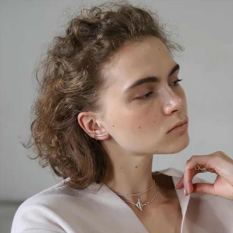 以貼合耳形所設計的佩戴方式,用手工感的線條,延展出纖細而修長的漂亮曲線。簡單卻充滿個性的造型款,除了可以單獨配戴之外,也可以搭配線型的耳扣,創造出具有個人風格的組合。