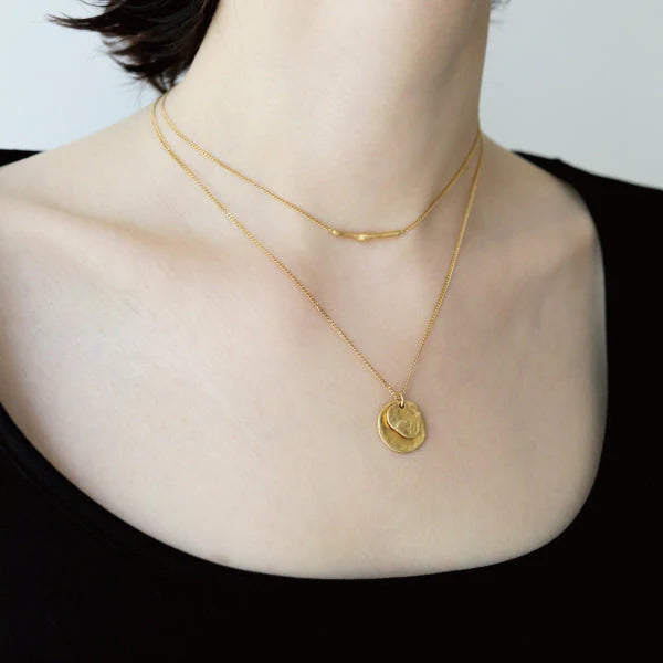 這款滿月造型的項鍊,呈現以往圓形墜飾所少有的飄逸感,給人溫柔、輕盈的印象。具手工質感的細節,猶如古董般的精緻。前後採不同設計,能展現兩種面貌,讓項鍊更具變化性。